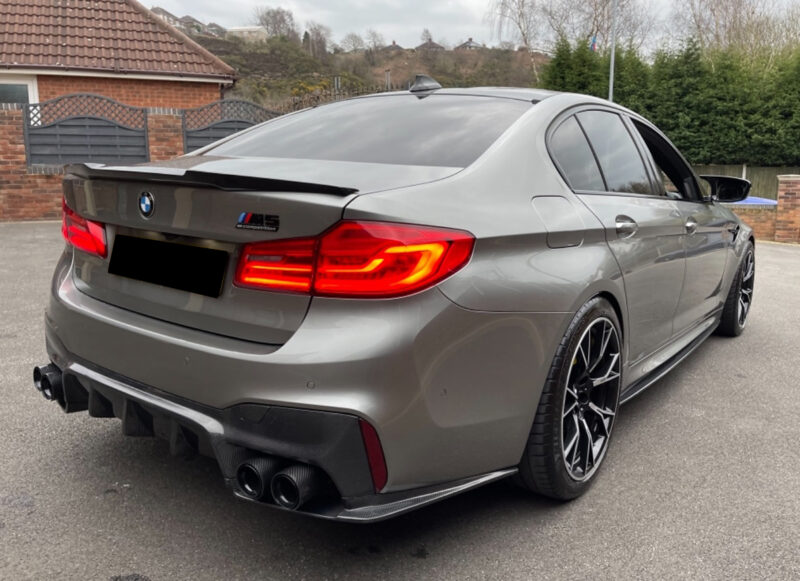 Real carbon fibre has a presence you can spot from a few steps away. The weave sits under a clear, neat finish that catches light with more depth than painted trim. It gives the rear of the M5 a calm motorsport tone that suits the car without forcing attention. You walk up to the car, catch that subtle gloss in your side view, and realise how much this one piece changes the overall mood.