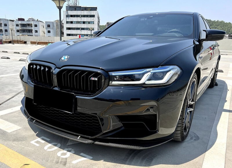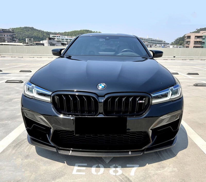 Each section is shaped to follow the bumper’s contours, creating a seamless fit that feels natural, almost as if BMW intended it from the start. The high-gloss carbon weave catches the light beautifully, subtle in some angles yet striking in others, giving the front end that premium motorsport-inspired presence.