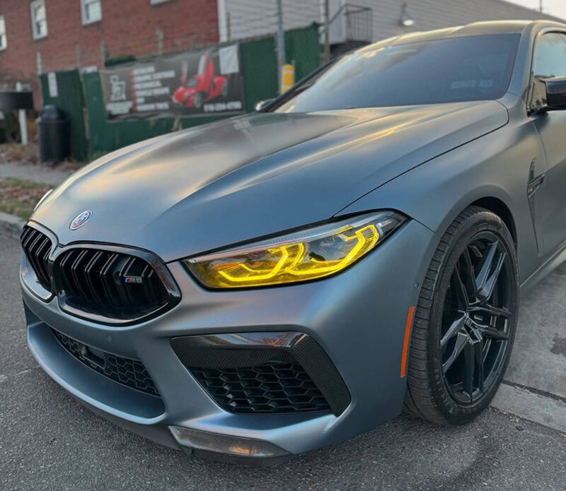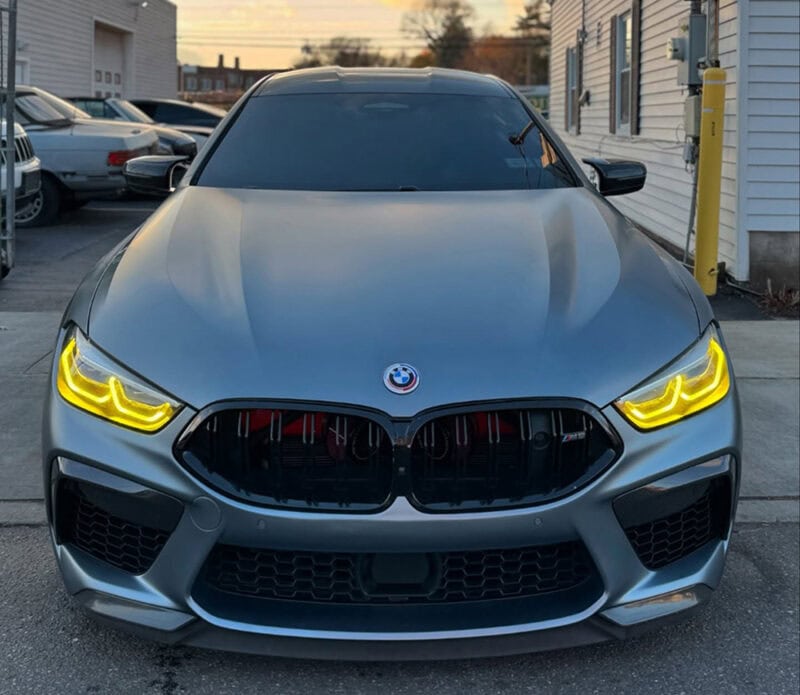 These modules replace the factory white daytime running lights with a rich, golden yellow that feels straight off the Nürburgring. It’s sharp, clean, and instantly gives your 8 Series or M8 a more aggressive, track-focused look—even if it’s just parked outside your flat. And beyond style, there’s function. The yellow tone cuts through low light and fog better than the cooler factory LEDs, helping your car stay visible without blinding everyone else on the road.