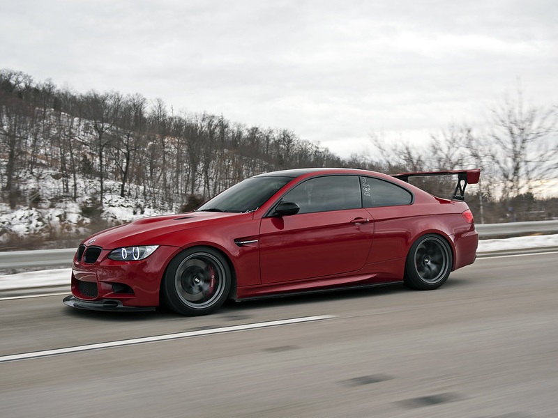 The wing isn’t just about looks. It’s fully adjustable, letting you set the angle to increase downforce when you need more stability at speed. It adds that reassuring planted feel on fast roads and gives the rear of the car the confidence that the E92 chassis deserves. Even in the photos, the stance changes – everything sits lower, tighter, calmer.