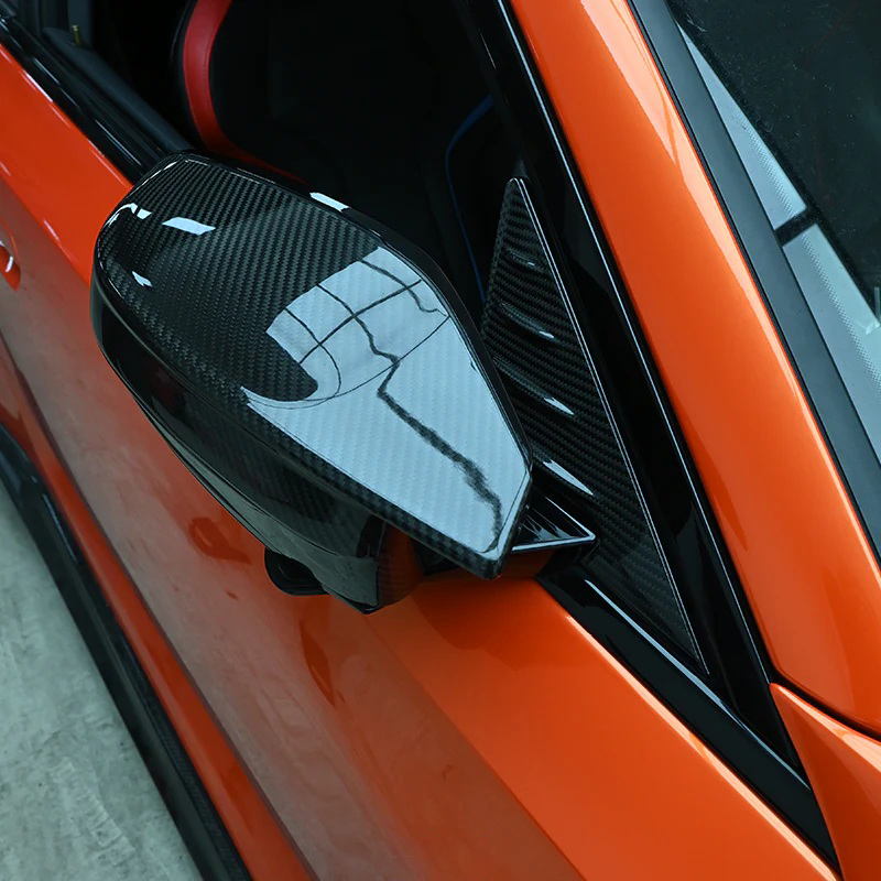 A UV-resistant high-gloss clear coat protects the carbon against fading and yellowing, keeping the finish rich and deep even after years of use. They’re lightweight, sleek, and designed for enthusiasts who appreciate those finer details that make a car feel complete.