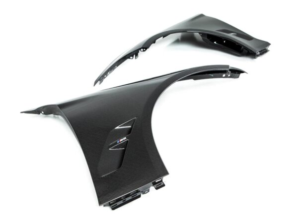 Each piece is shaped to fit the factory mounting points, so the fenders sit on the body with the same precision as the original parts. The weave pattern stays consistent across both sides, which helps maintain a uniform finish once installed. As a genuine BMW product, the fit, panel gaps and overall geometry match the car exactly, so the upgrade blends into the vehicle’s natural lines instead of standing out.