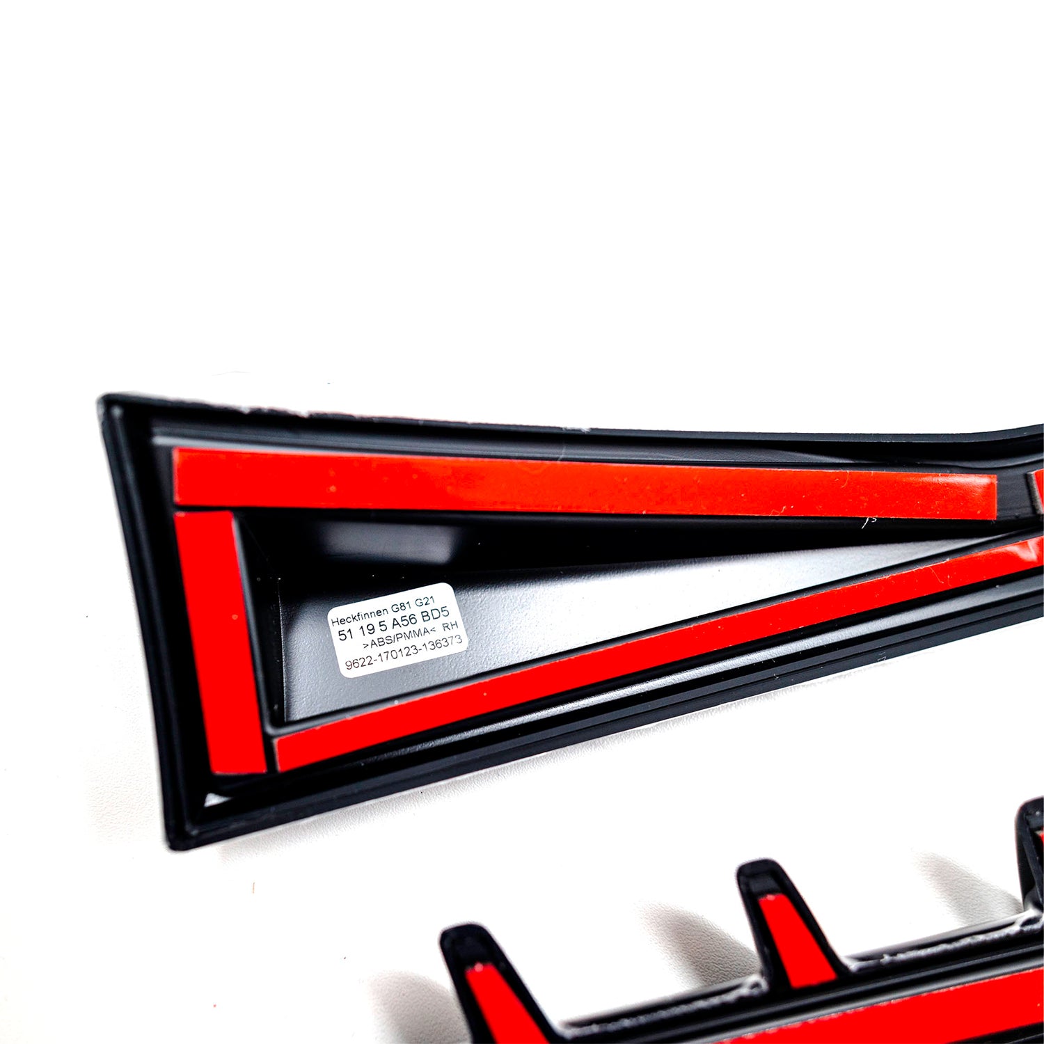 The Genuine BMW M Performance Rear Fins for the G81 M3 Touring and G21 3 Series add a sharper finish to the rear of the car without overpowering the design. Finished in gloss black, they sit neatly on the tailgate and work well with the matching rear spoiler. BMW supplies each fin with protective clear film, so the surface stays clean during transport and installation.