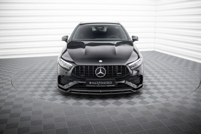 The Maxton Design Front Splitter for the Mercedes-AMG A35 W177 LCI is designed to enhance both style and function. Manufactured entirely from high-quality ABS plastic, this component offers flexibility, durability, and resistance to varying conditions. Its aerodynamic role is to increase front-end stability, ensuring improved grip when driving at speed.