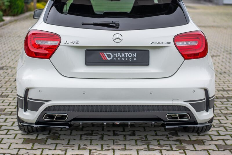The Maxton Design rear corner splitters for the Mercedes-Benz A45 AMG W176 bring both function and subtle aggression to the car’s profile. Manufactured from ABS plastic, the same material used for OEM bumpers, these parts combine strength with flexibility. They arrive in a black finish, ready for installation, with no additional preparation required unless a custom paint choice is desired.