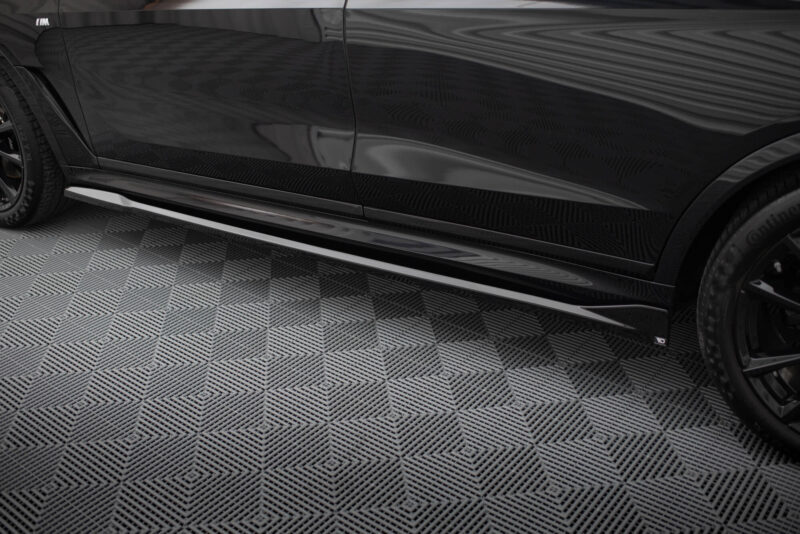 The Maxton Design side skirts for the BMW X7 M Sport G07 LCI are built to enhance both form and function. Manufactured from high-quality ABS, these skirts deliver the durability required for everyday use while maintaining a clean finish that blends seamlessly with the SUV’s design. Their structure visually lowers the car, giving the X7 a sportier stance and tying together the front splitter and rear diffuser for a more balanced profile.