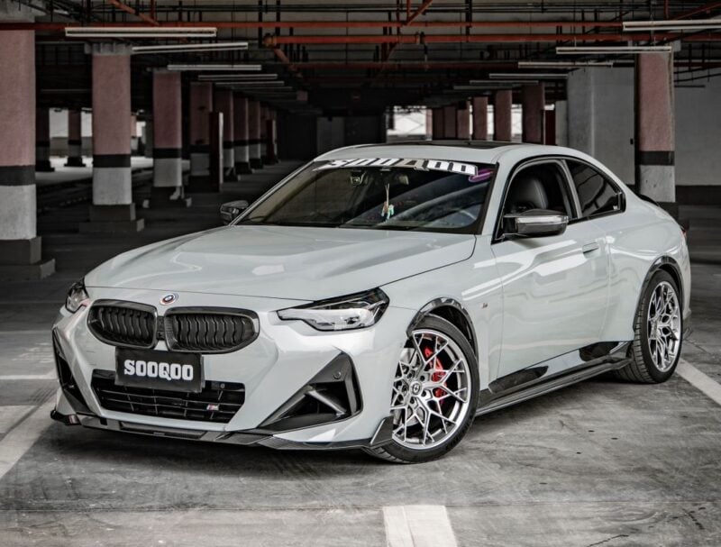 Introduce a touch of elegance and performance enhancement to your BMW 2 Series G42 with the SOOQOO G42 Prepreg CARBON FIBRE Front Bumper Trims. These trims are precisely engineered from advanced prepreg carbon fibre, a material celebrated for its exceptional strength, lightweight properties, and durability. Designed to seamlessly integrate with the G42’s front bumper, these trims not only enhance the visual appeal of your BMW but also contribute to its aerodynamic efficiency by smoothing airflow across the front end. The high-quality carbon fibre finish delivers a sleek, sporty look that underscores the vehicle’s dynamic design while offering a luxurious feel. Ideal for BMW 2 Series G42 owners looking to add a distinctively stylish yet functional element to their car, the G42 Prepreg CARBON FIBRE Front Bumper Trims are an outstanding upgrade that blends perfectly with the sophisticated and aggressive aesthetics of your vehicle.