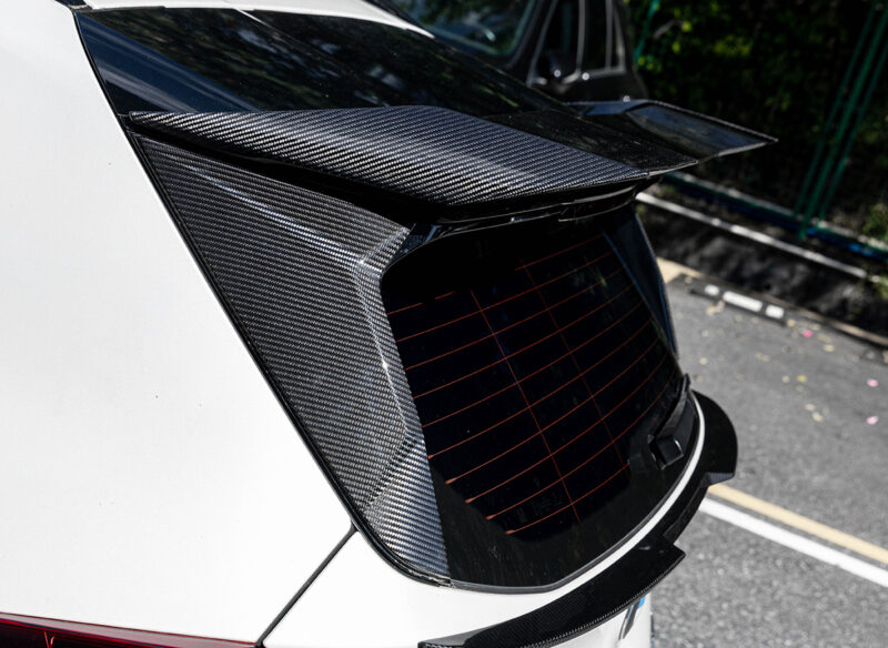The SOOQOO Prepreg Carbon Fibre Roof Spoiler for the BMW G45 X3 brings a bold mix of style and function that feels right at home on this latest generation SUV. You notice it straight away. The sharp carbon structure sits high on the tailgate and follows the roofline with a clean, purposeful shape that looks like it came straight from a track car. It adds height, depth, and a sense of motion even when the car is parked.
